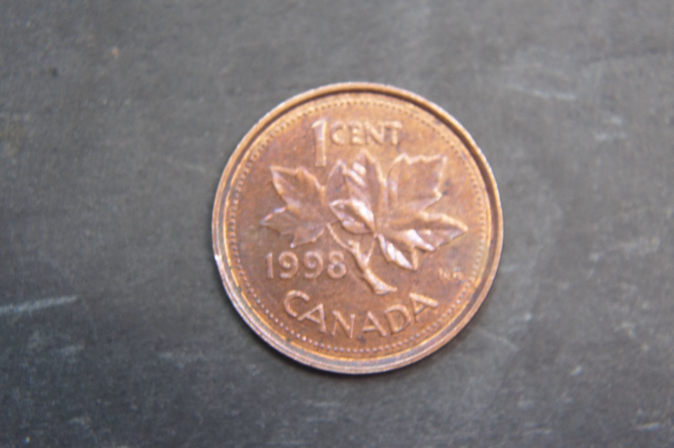 A 1998 1 Cent Coin from Canada minted in the reign of Elizabeth II.
